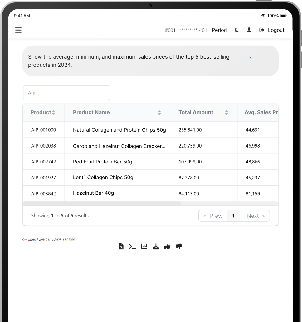 It doesn’t just display information — it delivers insights that create real value for the business. This allows teams to focus on what truly matters, instead of spending time navigating complex workflows just to reach the data. This approach enables businesses to rapidly extract insights from scattered ERP data, manage their processes more efficiently, and take stronger steps toward the future.